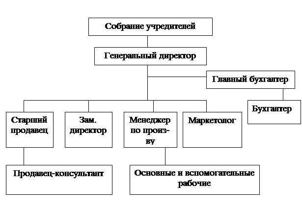 Продавец по найму выполняет свою трудовую функцию по срочному трудовому договору, заключенному на срок – 6 месяцев. В течении рабочего дня работнику предоставляется перерыв для отдыха и питания продолжительностью один час, который в рабочее время не включается. Расчет заработной платы и график отпусков приведен в Приложении. Организационная структура фирмы представлена на схеме 1: