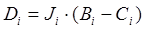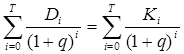 где Di – доход предприятия в i-ом временном интервале; Кi – инвестиционные вложения в i-ом временном интервале, которые принимаются по проекту с учетом инфляции национальной валюты; Q – показатель ВНД за временной интервал в долях от единицы; i – текущий временной интервал, принимающий значения от 0 до Т; Т – длительность жизненного цикла проекта, исчисляемая в принятых временных интервалах. В формулах для расчета показателя ВНД Di получается в результате следующих расчетов: