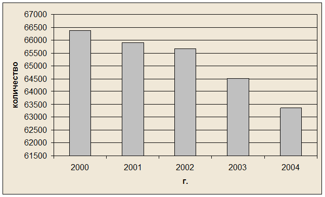 Динамика изменения численности профессиональных учебных заведений за 2000 - 2004 гг.