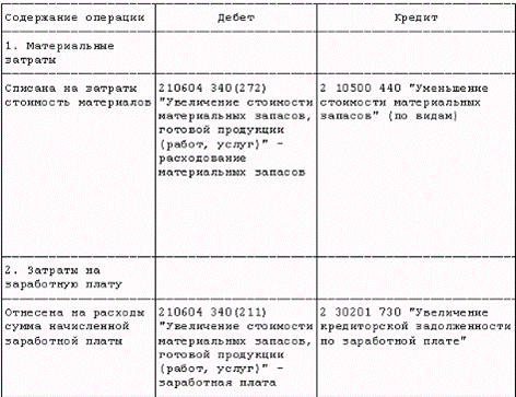 3. При формировании себестоимости продукции (работ, услуг) затраты учреждения, связанные с осуществлением им разрешенной предпринимательской деятельности, отражаются на счете 2 10604 000 "Изготовление материальных запасов, готовой продукции (работ, услуг)" в соответствии со сметой расходов по кодам операций сектора государственного управления. Счет предназначен для учета операций по изготовлению материальных запасов в рамках основной деятельности, готовой продукции (выполнению работ, оказанию услуг). Счет 2 10604 340 "Увеличение стоимости изготовления материальных запасов, готовой продукции (работ, услуг)" предназначен для формирования фактической себестоимости готовой продукции (работ, услуг). В последующем эти суммы должны списываться на уменьшение соответствующих доходов учреждения и отражаться по дебету счета 240101130 "Доходы от оказания платных услуг" и кредиту счета 210604440 "Уменьшение стоимости изготовления материальных запасов, готовой продукции (работ, услуг)".
