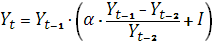 Предположим, что в предшествующем периоде спрос был равен предложению, т.е. α = 1. Тогда в соответствии с принятыми условиями поведения предприниматели и в текущем периоде сохранят темпы роста производства такими же, как и в предшествующем периоде, т.е.