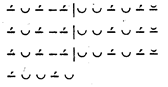 В лирике античные поэты употребляли строфы, состоявшие иногда из различных стихов, которые, в свою очередь, собирались из различных стоп в определенной последовательности. Такие стихи именовались логаэдами. Вот пример сапфической строфы (из Горация). Схема: