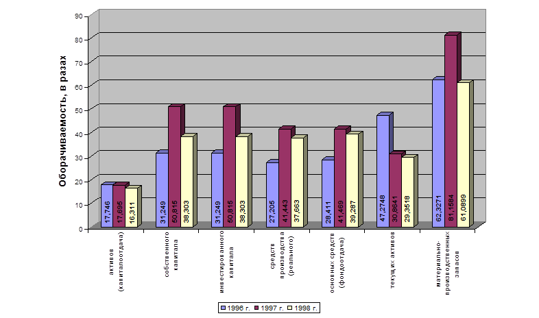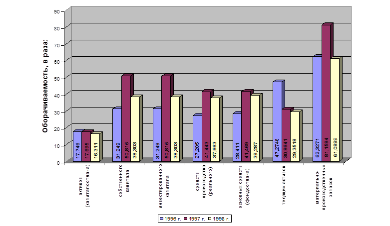 Таблица 2.3. «Динамика оборачиваемости за 1996 – 1998 гг. (в целом)»[6]