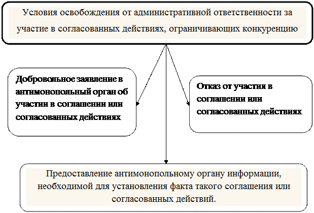 Недобросовестная конкуренция выразившаяся, во введении в оборот товара с незаконным использованием результатов интеллектуальной деятельности, влечет наложение штрафа в размере от 1 до 15% от выручки от реализации товара на рынке, которого было совершено правонарушение, но не менее 1000 МРОТ. Программа освобождения от ответственности участников картельных соглашений введенная Федеральным законом №45-ФЗ «О внесении изменений в Кодекс Российской Федерации об административных правонарушениях» представлена на рис.5.