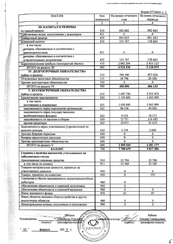 Активная часть баланса характеризуется незначительным преобладанием оборотных активов. Доля внеоборотных активов составляет 45,1% от величины всех активов. Из внеоборотных активов основной удельный вес приходится на долгосрочные финансовые вложения, которые составляют 31,4% от величины активов предприятия. Из оборотных активов основной удельный вес приходится на дебиторскую задолженность, которая составляет 34,8% (что составляет угрозу) от величины активов предприятия. Доля денежных средств в структуре актива совсем маленькая: 0,4%, к тому же наблюдается отрицательная динамика по сравнению с предыдущими периодами. Компания активно использует заемные средства, доля которых составляет 12,6%. На долю нераспределенной прибыли в структуре пассива приходится 37,7%. 4. Расчет финансовых коэффициентов деятельности предприятия по группамПоказатели ликвидности: · 2009:К т.л. = 2008: 6195539/4201178=1,47 2007: 5945524/2855545=2,08 · 2009: К а.л. = 2008: 35753/4201178=1,47=0,01 2007:73260/2855545=0,02 · 2009: К с.л. = 2008: (6195539-1632434)/ 4201178=1,08 2007:(5945524-1961353)/ 2855545=1,39 · 2009: К з.т.о. = 2008: 1632434/6195539=1,26 2007: 1961353/5945524=3,2 · 2009: Чистый оборотный капитал = Атек - О кр =5856286-3560670=2295616 2008: 6195539-4201178=1994361 2007: 5945524-2855545=3089979 У компании не хватает достаточного количества денежных средств для погашения краткосрочных обязательств. Это свидетельствует о неустойчивости финансового положения компании. При этомкомпаниярасполагает достаточным количеством ликвидных активов, которые при необходимости могут стать источником для погашения краткосрочных обязательств. Показатели по этой группе желают лучшего, так как часть даже не дотягивает до нормативного значения. Однако радует ситуация, что большинство показателей улучшили свои результаты по сравнению с предыдущим годом. Показатели платежеспособности: · 2009:К авт. = 2008:5130075/9817387=0,52 2007:4518238/7780679=0,58 · 2009:К д.д.с.т.а. = 2008: 35753/6195539=0,005 2007:73260/5945524=0,01 · 2009:К о.з.с.с. = 2008:(5130075-3621848)/ 1632434=0,92 2007: (4518238-1835155)/1961353=1,3 · 2009:К д.с.с.д.а. = 2008: 3621848/5130075=0,7 2007: 1835155/ 4518238=0,4 · 2009:К о.с.о.с. = 2008:(5130075-3621848)/ 6195539=0,24 2007: (4518238-1835155)/ 5945524=0,45 · 2009:К манев. = 2008: (5130075-3621848/)/5130075=0,29 2007: (4518238-1835155)/ 4518238=0,59 В данной группе показателей наблюдается ухудшение ситуации по сравнению с предыдущими годами. Показатели платежеспособности свидетельствуют о том, что доля собственных средств в структуре капитала достаточна для того, чтобы считать предприятие достаточно независимым от сторонних вливаний. Денежных средств не достаточно для выполнения краткосрочных обязательств, хотя они могут находиться в обороте.Доля собственных средств находящихся в мобильной форме мала, что говорит о недостаточной обеспеченности непрерывности производственного процесса. Показатели рентабельности: · 2009:К в.п = 2008: (9311503-4211895)/ 9311503=0,54 2007: (8162428-3918835)/ 8162428=0,51 · 2009:К о.п. = 2008: 915459 / 4211895=0,21 2007: 596202/8162428=0,07 · 2009:К р.в.д.= 2008: (915459+(1437385-58866)) / 4211895=0,5 2007: (596202+ (1445677-63834))/ 8162428=0,2 · 2009:К р.п. = 2008: 809810/4211895=0,19 2007: 388002/8162428=0,04 · 2009:К р.а. = 2008: 809810/9817387=0,08 2007: 388002/7780679=0,04 · 2009:К р.т.а. = 2008: 809810/6195539=0,13 2007: 388002/5945524=0,06 · 2009:К р.д.а. = 2008: 809810/4842140=0,16 2007: 388002/1835155=0,21 · 2009:К р.с.с. = 2008: 809810/5730702=0,14 2007: 388002/4518238=0,08 Доля валовой прибыли в объеме продаж составляет в 2007г – 51%, в 2008г –54%, а в 2009г – 53%. Величина операционной прибыли, приходящейся на одну денежную единицу продаж в 2007г –7%, в 2008г – 21%, а в 2009г – 7%. На единицу денежных средств, предприятие получило чистой прибыли в 2007г – 0,04, в 2008г – 0,19 ,в 2009г – 0,05. Хоть показатели и маленькие предприят