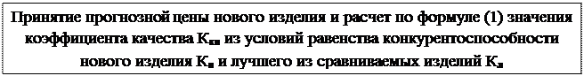 Здесь n-количество рассматриваемых изделий; Ц-цена i-ого изделия. Обозначим через Цкрi и Цфi «красную» и фактические цены i ого товара. Тогда К— коэффициент ценовой конкурентоспособности i-го товара: Kцi=Цкрi/Цфi (3) Расчет коэффициентов конкурентоспособности аналогов Кiпроизводится по формуле: Ki=λ*Kцi+(1-λ)*Kki, (4) где λ- коэффициент предпочтений. Уравнение линии «красной цены» (1) позволяет решить такую задачу, как назначение конкурентной цены новой модели. Фактическая цена не должна превышать «красную», иначе покупатель может отказаться от покупки такого товара. Чтобы изделие имело ценовую конкурентоспособность, ее значение, определенное по формуле (4), должно быть не меньше, чем у лучшего конкурента. Таким образом, конкурентоспособность нового изделия может быть выражена через показатели качества. Алгоритм формирования этих показателей представлен на рисунке 1.