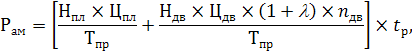 где: Нпл , Ндв – нормы амортизационных отчислений соответственно по планеру и двигателю, % (для нашего случая Нпл =Ндв =25%); Цпл , Цдв – цена планера и одного двигателя соответственно (Цпл =240 млн.руб, Цдв =30 млн.руб); Тпр