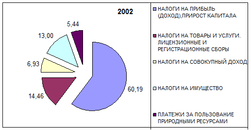 Рис. 2.3. Структура налоговых поступлений в бюджет Новосибирской области в 2002 году