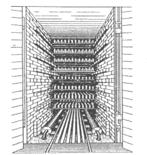 Рис. 3. Туннельное сушило Рис. 4. Камерное сушило Рис. 5. Туннельная печь 1- корпус; 2- вагонетка с кирпичом. Библиографический список: 1. Рыбьев И. А. Строительное материаловедение. «Высшая школа», 2003. 2. Алимов Л. А., Воронин В. В. технология производства неметаллических строительных изделий и конструкций.- М.: ИНФРА- М, 2005. 3. Бондаренко В.М., Римшин В. И. Строительная наука - направления развития // Строит, материалы. 1998. № 4. 4. Комар А. Г. Строительные материалы и изделия.- М.: МИСИ, 1990 5. Гончаков Г. И. Строительные материалы.- М.: ВШ, 1981 6. Перегудов В. В. Тепловые процессы и установки технологии строительных материалов и изделий.- М.: ВШ, 1973 7. Мороз И. И. Технология строительной керамики. Киев, 1980 8. Микульский В. Г. и др. Строительные материалы, 2006 Для подготовки данной работы также использованы материалы с сайта http://referat.ru/ |