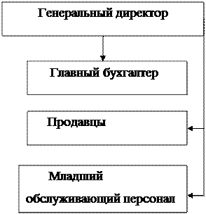 Рисунок.1 Организационная структура магазина ООО «Пятерка» Основные задачи служб: - генеральный директор - утверждает структуру и штатное расписание, устанавливает размеры оплаты труда, утверждает должностные инструкции работников, дает указания обязательные для всех работников в магазине, следит за деятельностью и координирует работу магазина. - бухгалтер – обеспечивает правильную постановку и достоверность учета, контроль за сохранностью собственности, правильное расходование денежных средств и материальных ценностей, финансовых ресурсов. - в обязанности продавцов входит подготовка цены товаров, проверка полочных ценников, организация торговли, обслуживание покупателей, подготовка и уборка рабочего места (получение упаковочного материала, проверка работоспособности торгового оборудования и инвентаря, пополнение рабочих товарных запасов, уборка тары, поддержание надлежащего санитарного состояния), - в обязанности двух фасовщиц - подготовка товаров к продаже, проверка сортности, комплектности, упаковка товаров. Продавцы работают посменно по составленному графику. График выхода на работу – два через два. Торговлю осуществляют четыре продавца (два продавца меняют предыдущих продавцов). Продавцы работают добросовестно, соблюдая вежливость и обходительность при работе с покупателями. В обязанность продавцов входит поддержание рабочего места в чистоте и порядке. Весь мусор, в том числе транспортная тара, по окончании рабочего дня выносится продавцами в коридор, где экспедитор товара вывозит мусор на утилизацию. Вся дневная выручка по окончании рабочего дня сдается бухгалтеру. Второго числа каждого месяца продавцы получают заработанную плату за отработанные ими смены (600 руб./смена + 3 % от выручки). В конце месяца директор или бухгалтер проводит с продавцами ревизию, где оцениваются результаты отработанного месяца. Помещения магазина расположены на первом этаже кирпичного жилого дома. Общая площадь магазина 78,1 м2 , фундамент представлен сборными железобетонными блоками, стены - кирпичные с облицовкой, полы - деревянные с линолеумным покрытием, окна - деревянные с двойным остеклением, дверь – деревянная внутренняя, металлическая – наружная, коммуникации – электроснабжение, отопление, водоснабжение и водоотведение – от сетей жилого дома. Высота торговых залов равна 2,7 метра. Магазин имеет следующие помещения: тамбур входа 3,2 м2 торговые залы 50,65 м2 помещение персонала 5,7 м2 подсобное помещение 15,55 м2 санузел 3,0 м2 Магазин имеет общий вход и выход с главного фасада жилого дома. Торговый зал имеет достаточную площадь для покупателей и необходимый набор оборудования для представленного ассортимента товаров. Расстояние между прилавками и оборудованием за прилавками – 0,8 м. Складское помещение оборудовано металлическими стеллажами. Полы в торговом зале – деревянные с покрытием линолеумом, потолок оклеен легкой пенополистирольной плиткой, стены окрашены на всю высоту. Бытовое помещение оборудовано необходимой мебелью, имеет естественное освещение, пол – линолеум по деревянному полу, отделка стен – обои. Для персонала имеется санузел, умывальник. В помещениях смонтирована система автоматической пожарной сигнализации. Система отопления магазина объединена с системой отопления жилой части здания. Для сокращен