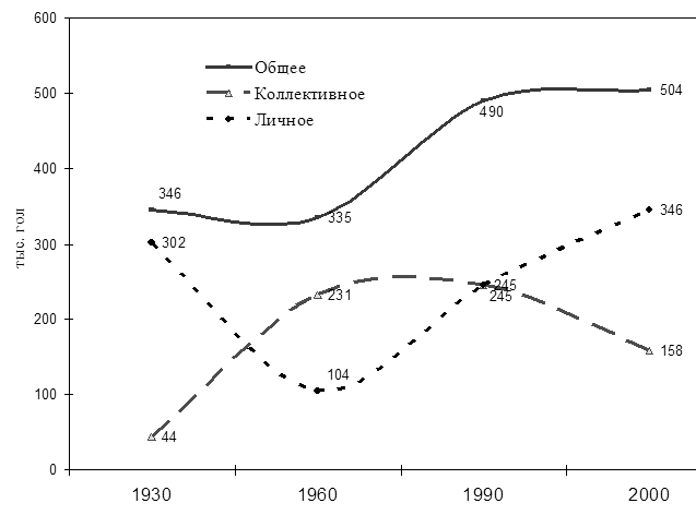 Рис. 1. Динамика и структура поголовья оленей в ЯНАО за 1930-2000 гг. Северное оленеводство, которое по определению Б.В. Андрианова (1985, с.55-56) является "наиболее подвижной формой кочевого скотоводства, ...а понятие "кочевничество" или "номадизм" должно включать в себя не только хозяйственную, но и социальную характеристику общества". Современные народы Севера, сохраняющие стабильные показатели оленеводства, обладают положительной динамикой естественного прироста, а народы, у которых поголовье оленей сокращается или утеряно, находятся в стадии стагнации или убыли населения. Оленеводство – это не только условие демографической устойчивости, но и важнейший фактор экологии северных народов. Факторы породообразование в северном оленеводстве По мнению проф. Е.Я. Борисенко "Порода ‑ понятие историко-зоотехническое, а не чисто биологическое. Ее следует понимать как сложную систему, созданную и поддерживаемую планомерной деятельностью человека в определенных хозяйственных и природных условиях."(1966, С. 354). Следовательно, к неотъемлемым особенностям породы, прежде всего, аборигенной, с полным основанием можно отнести историю ее зарождения, генезиса и консолидации, как системы хозяйственного использования одного из биологических видов животных одомашненных человеком. Процессы породообразования в северном оленеводстве имеют много общего с генезисом пород других видов одомашненных животных Азии: лошадей, овец, яков, верблюдов и т.д. В основе их породной специализации лежит "народная", традиционно сложившаяся система селекции и полное отсутствие коммерческой мотивации, свойственной выведению многих заводских пород, появившихся позднее в Европе и Северной Америке. Анализ исторического, этнографического и зоотехнического материала, имеющегося в нашем распоряжении, позволяет выделить в числе важнейших факторов породообразования в северном оленеводстве: ареал и экотипы, систему выпаса и тип питания, размер стад и методы использования оленей, естественный и искусственный отбор. Ареал и экотипы. За последнее тысячелетие ареал домашних северных оленей по сравнению с дикими сородичами изменился не столь сильно, т.к. домашние животные более полно используют кормовую базу и находятся под защитой человека. Опыт дальних перевозок и акклиматизации домашнего северного оленя на островах и континентах свидетельствует о его высокой адаптивности как биологического вида, но говорить всерьез про массовый перевод этих животных в районы пустующих экологических ниш пока не приходится. Наиболее разнообразен по экологическим условиям ареал ненецкой породы: в него входят арктические, типичные и южные тундры полуостровов Кольского, Ямала, Гыдана, лесотундра, горные пастбища Полярного и Приполярного Урала, таежные районы Республики Коми и Ханты-Мансийского автономного округа. Система выпаса и тип питания. Система хозяйственного использования оленьих пастбищ по районам оленеводства заметно дифференцирована, особенно в меридиональном направлении. Полувольное содержание оленей свойственно для тайги и частично лесотундры, где круглогодичное окарауливание крупных стад затруднено вследствие тяжелых экологических условий выпаса в летне-осенний период. В тундре и лесотундре оленеводы как правило окарауливают стада круглосуточно, оленей ненец