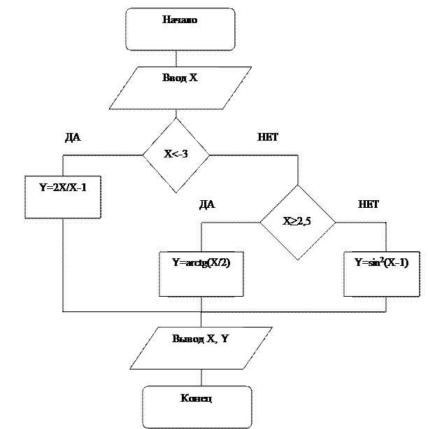 В корзине было 6 белых шаров. Следовательно, всего в корзине – (6+18)=24 шара Ответ: 24 шара. Вычислить значение функции y=y(x) и проверить правильность работы программы на примере трех контрольных значений Кодпрограммы: Private Sub Command1_Click() If x < -3 Then y = 2 * x / x - 1 ElseIf x >= 1 Then y = Atn(x / 2) Else y = Sin(x - 1) ^ 2 End If End Sub