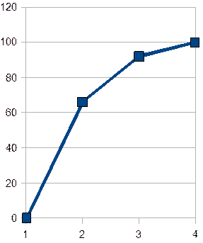 З таблиці. 2.1 видно, що велика частина витрат пов'язана із закупівлею трьох найменувань матеріалів, а саме солі, дріжджів та маку. Результати ABC представлені в таблиці. 2.2. Графічно вони інтерпретуються кривою Лоренца (рис. 2.4). З графіка видно, що приблизно 66% витрат доводиться на 14% від загальної кількості матеріалів і лише 8% – на матеріали, що становлять 57% в загальній кількості.