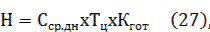 где: Н - норматив незавершенного производства, руб.; Сср.дн - среднедневная себестоимость выпуска продукции, руб.; Тц - длительность производственного цикла (1 день); Кгот - коэффициент готовности.