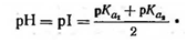 Таким образом, при низких значениях рН аминокислота находится в катионной форме, а при высоких — в анионной. При некотором промежуточном значении рН аминокислота оказывается незаряженной и называется цвиттерионом. Было установлено, что в кристаллическом состоянии или после растворения в чистой воде такие аминокислоты существуют главным образом в виде цвиттерионов, что придает им свойства ионных соединений, а именно высокую точку плавления и кипения, хорошую растворимость в воде и плохую растворимость в таких органических растворителях, как эфир и хлороформ. Величина рН, при которой в водном растворе преобладает цвиттерион, называется изоионной точкой: число отрицательных зарядов, образующихся на молекуле в результате отщепления протонов, равно числу положительных зарядов, образующихся благодаря присоединению протонов. Для аминокислот эта величина приблизительно соответствует изоэлектрической точке (pi) — молекула не несет суммарного заряда и таким образом оказывается электрофоретически неподвижной. Численное значение рН для этого случая зависит от того, насколько сильной является кислота, и определяется следующим уравнением: Для глицина величины рКа, Н рКаг равны 2, 3 и 9,6 соответственно; следовательно, изоионная точка равна 6,0. При более низких значениях рН в растворе содержатся и цвиттерион, и катион, а соотношение между ними определяется уравнением Гендерсона — Хассельбальха; при более высоких рН наряду с цвиттерионом в растворе находится анион. Для так называемых «кислых» аминокислот, например, аспарагиновой кислоты; ионизация носит несколько иной характер. Это обусловлено наличием у них второй карбоксильной группы.