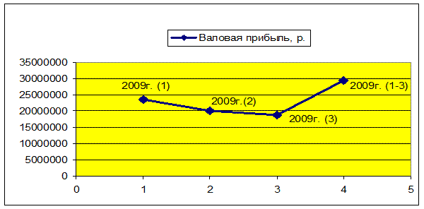 Рисунок 3 – Динамика изменения валовой прибыли за счет применения предложенных резервов. Так как основным уменьшением прибили от продаж, являются управленческие и коммерческие расходы, (прибыль от продаж равна разнице между валовой прибылью и расходами управленческими и коммерческими), то нужно урегулировать эти расходы, попытаться снизить, или оставить на том уровне, на котором они есть. Коммерческие расходы будут увеличиваться с увеличением объемов проданной продукции, так как это расходы, связанные с реализацией продукции. Организация использует железнодорожные перевозки за границу, где расходы на перевозку зависят от объемов перевозимой продукции (м3 ). Один из способов снижения этих расходов: найти покупателей при доставке товаров, котором, транспортные расходы будут меньше. Управленческие расходы повысились в 2008г. за счет увеличения численности управленческого персонала. В 2009г. приема в эту структуру управления не произойдет, следовательно, управленческие расходы останутся на том же уровне. Можно снизить управленческие расходы за счет сокращения управленческого персонала. Таким образом, при рационализации коммерческих и управленческих расходов прибыль от продаж и чистая прибыль будут иметь большой темп роста. Таблица 11 - Прогноз отчета о прибылях и убытках, тыс. р.