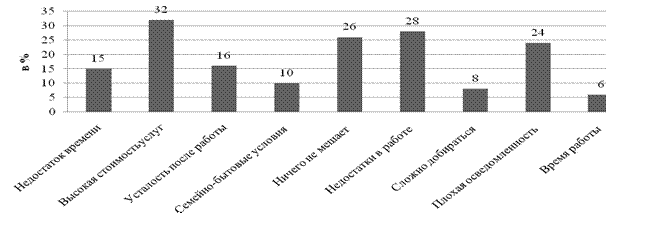 Рис. 2.9. Изменение качества услуг учреждений культуры В результате проведенного опроса было установлено, что жители г.Липецка посещают учреждения культуры в среднем один раз в три – шесть месяцев. В связи с этим необходимо определить обстоятельства, затрудняющие более частое посещение. Графически эти данные представлены на рисунке 2.10. Мы видим, что основными препятствиями являются: высокая стоимость услуг, недостатки в работе учреждений культуры, плохая осведомленность о предоставляемых услугах. На этом же высоком уровне находится и отсутствие объективных причин для посещения, то есть лень и безразличие, а также такие субъективные факторы, как отсутствие свободного времени, усталость после работы, сложность добираться. Также необходимо отметить, что такое соотношение характерно в зависимости от возраста и уровня образования.