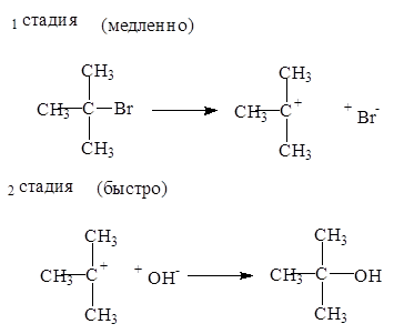 Реакция замещения галогена на ОН-группу протекает по механизму нуклеофильного замещения SN . В зависимости от строения субстрата замещение протекает по SN 1 (мономолекулярное замещение):