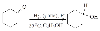 циклогексанон циклогексанол Для восстановления карбонильной группы используются комплексные гидриды металлов - борогидрид натрия NaBH4 (растворитель - вода, этанол) или алюмогидрид лития LiAlH4 (растворитель - абсолютный эфир):