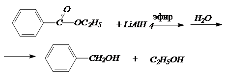 CH3 COCH3 + LiAlH4 ® (CH3 )2 -CHOH CH3 -CHO + NaBH4 ® CH3 -CH2 -OH Сложные эфиры также восстанавливаются алюмогидридом лития, причем оба фрагмента эфира превращаются в спирты: 4. Синтезы спиртов с использованием реактивов Гриньяра.