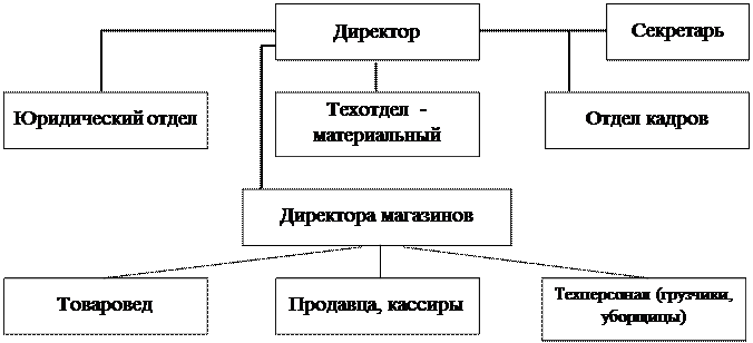Рис. 2. Предлагаемая схема аппарата управления ООО «Актив» Управленческий аппарат может быть сокращен за счет упразднения должностей: - заместителя директора (его функции будут выполнять директора магазинов); - администратора (эти функции в магазинах могли бы быть возложены на старших продавцов); - должности главного инженера, инженера по техники безопасности, заведующего складом целесообразно объединить работой единого техническо-материального отдела; функции отдела снабжения также должны быть переданы в этот отдел. Таким образом будут укреплены вертикальные и горизонтальные связи между менеджерами фирмы с большим объемом делегирования полномочий. Положительные факторы делегирования полномочий: - делегирование освобождает руководителя от выполнения несвойственных, рутинных операций, высвобождая время для решения важных и творческих вопросов; - делегирование является целенаправленной формой повышения квалификации сотрудников и способствует использованию их профессиональных знаний и опыта; - делегирование положительно влияет на мотивацию сотрудников. Они чувствуют себя хозяевами на участках работы, а это способствует раскрытию способностей, проявлению инициативы и самостоятельности. приложение 1 Программа социологического исследования сотрудников магазина «Актив» Уважаемые сотрудники!В целях изучения ваших ценностных ориентаций и мотивов труда, просим Вас ответить на нижеследующие вопросы, с тем чтобы оптимизировать Ваши трудовую деятельность на основе полученных результатов: 1. Чем для Вас является работа в магазине? · Средство существования · Основная ценность жизни · Возможность творческого роста · Средство общения с коллегами · Уверенность в завтрашнем дне 2. Отметьте, пожалуйста, Ваши мотивы труда? · Четко поставленные цели · Вознаграждение соразмерное труду · Возможность учиться и совершенствоваться · Нужность и важность работы · Возможность роста · Высокое доверие руководителя · Импульс торгового предприятия Приложение 2 Различия во взглядах и деятельности менеджеров директоров магазинов ООО «Актив»