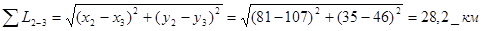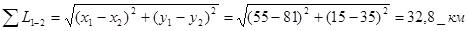Сопоставим намеченные варианты по критерию суммарной длины новых ЛЭП. Радиальные варианты: