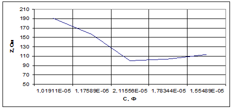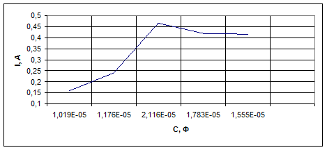 7. Вычислить полное, активное, емкостное, индуктивное сопротивления цепи, емкость батареи конденсаторов, значение cosj. 8. Построить графики зависимостей I = f(C); Z = f(C); cosj = f(C).