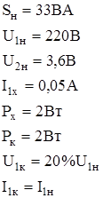 6. Рассчитать параметры, определяемые в опыте короткого замыкания трансформатора, коэффициент мощности cosj1к и результаты занести в таблицу 3. 7. Снять коротко замыкающий проводник с зажимов вторичной обмотки трансформатора в первоначальном варианте по схеме рис.1. 8. Подать на вход трансформатора номинальное напряжение U1н = 220В и поддерживать его постоянным. Произвести пять – семь замеров напряжений, токов, мощностей при уменьшении сопротивления нагрузочного реостата до достижения тока I2 = 5 А. 9. Результаты измерений и вычислений занести в таблицу 4. Табл. 4.