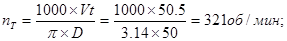 6. Определяем обороты шпинделя, соответствующие найденной скорости