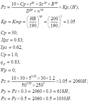 Главная составляющая силы резания при фрезеровании – окружная сила Pz, H,