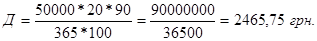 розраховується за формулою: де Д – сума дисконту; Н – номінальна сума векселя; к – річна ставка дисконту; n – строк у днях від дня обліку до платежу; Т – кількість днів у році.