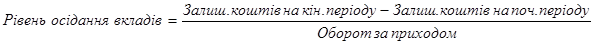 Задача 5. Банк виконує операції за вкладами населення, стосовно яких міститься наступна інформація (за ІІ квартал): середньо квартальний залишок вкладів – 64,7; оборот за прибутками – 48,5; оборот за видатками – 36,5; залишок на початок кварталу – 147,8; на кінець – 167,9. Визначте: які вклади від населення можуть приймати банки, а також рівень осідання вкладів.