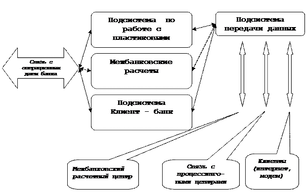 Подсистема предназначена для решения следующих задач: - выполнение операций по картсчетам, получение справочной и отчетной информации; - выдача наличных средств по магнитным карточкам; - прием платежей за коммунальные и другие услуги, оплаченных с помощью пластиковых карт.