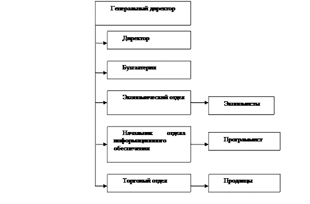 Рис. 1 Организационная структура ООО «Аленка» Данная структура имеет линейно-функциональный вид. Структура представляет собой схему непосредственного подчинения по всем вопросам нижестоящих подразделений вышестоящим. В подчинении директора находятся главный бухгалтер и начальник отдела договоров. Главный бухгалтер - осуществляет организацию бухгалтерского учета хозяйственно-финансовой деятельности организации и контроль за экономным использованием материальных, трудовых и финансовых ресурсов. Организует учет поступающих денежных средств, товарно-материальных ценностей и основных средств, учет издержек обращения, а также учет финансовых, расчетных и кредитных операций. В подчинении у главного бухгалтера находятся бухгалтера. Они выполняют работу по различным участкам бухгалтерского учета (учет основных средств, учет издержек обращения, учет реализации товаров, расчеты с поставщиками и заказчиками и пр.). Кроме того, бухгалтера осуществляют прием и контроль первичной документации по соответствующим участкам учета и подготавливают их к счетной обработке, а также отражают в бухгалтерском учете операции, связанные с движением денежных средств. В подчинении главного бухгалтера находится, кроме того, отдел кадров. Начальник отдела кадров возглавляет работу по обеспечению организации кадрами работников требуемых профессий, специальностей и квалификации в соответствии с уровнем и профилем полученной ими подготовки и деловых качеств. Принимает трудящихся по вопросам найма, увольнения, перевода, контролирует расстановку и правильность использования работников в подразделениях организации. Обеспечивает прием, размещение и расстановку молодых специалистов и молодых рабочих в соответствии с полученной в учебном заведении профессией и специальностью. Кроме главного бухгалтера, в подчинении у генерального директора находится начальник отдела договоров. Он осуществляет организацию и контроль договорных отношений. Начальник отдела расчетно-кассовых операций руководит менеджерами по расчету и начислению кредитных обязательств. Начальник отдела информационного обеспечения обеспечивает достоверность информации о платежеспособности клиента и является системным администратором. Торговый отдел осуществляет обслуживание клиентов, предоставляет консультации при выборе необходимой покупки, ведет подготовку товара к продаже, учет неудовлетворенного спроса, пополнение рабочих товарных запасов, отпуск товара покупателям. Учитывая специфику работы предприятия, линейно-функциональная структура управления является наиболее оптимальной. В фирме каждый знает свои обязанности и полномочия. За счет вовремя поступающей информации принимаются своевременный организационные решения, а так же вводятся нововведения. 2.2 Организация бухгалтерского учета и контроля на предприятии Документом, регламентирующим всю систему учета и документооборота предприятия, является учетная политика, которая утверждается в начале года приказом руководителя организации. Рассмотрим некоторые положения учетной политики ООО «Алёнка» Основные средства сроком использования, превышающим 12 месяцев и нематериальные активы учитываются по их стоимости с учетом фактических затрат на их приобретение. Начисление амортизации объектов 