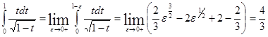 то этот предел обозначается Несобственные интеграл вида Здесь существенно, что особой точкой функции t является именно конец (левый или правый) отрезка [a,b]. Если особой точкой t(x) (как в разобранном выше примере) является внутренняя точка с интервала (a,b), то Пример. Вычислим Пусть