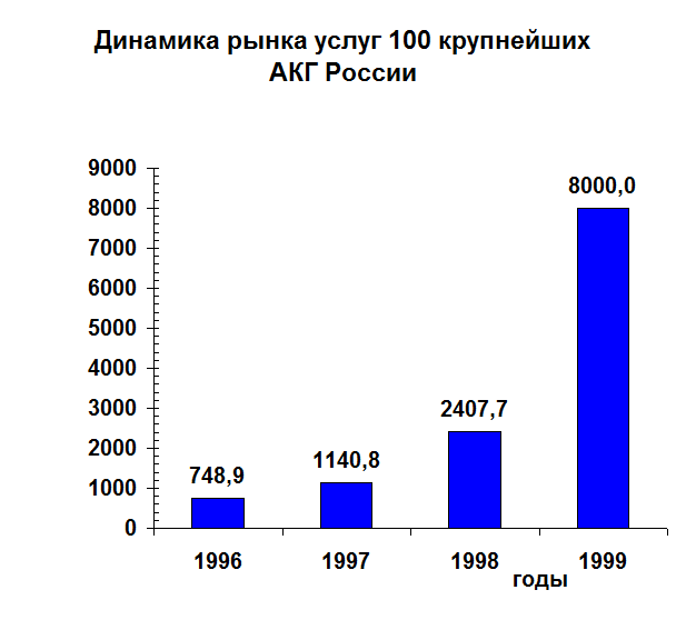 Оценка + 58 является показателем довольно сильной конкурентной позиции для АКГ «Современные бизнес-технологии». Она свидетельствует о неисчерпанных перспективах расширения деятельности, положительной направленности развития, инновационной технологической базе. Этот показатель подводит теоретическое обоснование для наблюдающегося фактически роста в объемах выручки, а значит, доли рынка данной АКГ. ЗАКЛЮЧЕНИЕ За последние годы в России получил широкое распространение аудит как независимый, вневедомственный финансовый контроль, осуществляемый в целях установления достоверности бухгалтерской (финансовой) отчетности, а также оказания иных аудиторских услуг по постановке и ведению бухгалтерского учета, составлению деклараций о доходах, консультированию в вопросах финансового, налогового, банковского и иного хозяйственного законодательства. В таком качестве аудит служит интересам не только собственников, но и государства. По мере развития аудита, роста профессионализма аудиторов и накопления ими опыта работы идет наращивание консалтинговых услуг и не только по налоговым и юридическим вопросам, но и касающимся выработки более эффективных систем управления и хозяйствования. Таким образом, аудит приобретает все большее значение для решения насущных проблем привлечения инвестиций, укрепления финансов и подъема экономики страны. Однако дальнейшее развитие аудита требует укрепления его нормативной базы, сохранения основополагающих принципов аудиторской деятельности, без которых аудит утрачивает свою независимость и самостоятельность, становится разновидностью ведомственного контроля. И это в настоящее время основная проблема аудита, решение которой не зависит ни от одного работника этой сферы услуг. Профессионалы давно испытывают острую потребность в более четком и эффективном регулировании аудита. Однако при решении этой проблемы нужно учитывать специфику нынешней экономической реальности и особенности сложившейся практики аудита в стране. На эту главную трудность развития аудиторской отрасли в России как снежный ком наворачиваются другие проблемы, сопутствующие этой, либо те, которые призван разрешить Закон «Об аудиторской деятельности»: контроль качества аудиторских услуг, страхование ответственности, обеспечение конфиденциальности информации и т.д. Такую же роль регулятора процесса и порядка проведения аудита должны в настоящее время играть правила (стандарты) аудиторской деятельности. В настоящее время еще не закончена их разработка. Однако основные вопросы, связанные с ПСАД имеют несколько иной характер. Опять-таки в силу определенного несовершенства правовой базы в России встает проблема законности их соблюдения всеми аудиторами и аудиторскими фирмами. Однако принятие Закона «Об аудиторской деятельности», правил (стандартов) аудиторской деятельности имеет принципиальное значение не только для решения внутренних проблем отрасли. Оно (принятие) будет способствовать лучшей интеграции российского аудита в систему международных экономических отношений, обеспечит признание отечественного аудиторского заключения зарубежными пользователями российской экономической информации. В целом же истекшее десятилетие рыночных преобразований в России заставило экономически активное насе