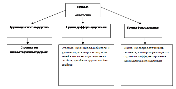 Прямые конкуренты могут образовывать различные группы. Основные из них представлены на рис. 3.