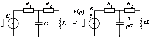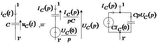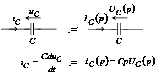 Операторное напряжение на емкости равно произведению операторного емкостного сопротивления на величину операторного тока. Выражения