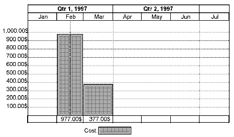 Рис. 2. Фрагмент типового плана (диаграмма Гантта) В качестве основного вида ресурсов в Microsoft Project используются исполнители работ (трудовые ресурсы), на основе которых имеется возможность оценить использование финансовых ресурсов. Для этих целей предусмотрены 3 типа диаграмм. Пример одной диаграммы приведен на рис.3. Рис. 3. Диаграмма распределения ресурсов