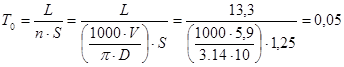 Резьбонарезание: Подача равна шагу резьбы: S0 =1,25 мм/об Скорость резания:
