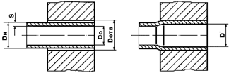 Для того, чтобы правильно выбрать инструмент для развальцовки труб в трубных решетках, необходимо располагать следующей информацией: · материал трубной решетки; · диаметр отверстий трубной решетки “Dотв” (см. рис. 3); · толщина трубной решетки “H” (см. рис. 3); · шаг перфорации (расстояние между центрами соседних отверстий) “t” (см. рис. 10); · наличие в отверстиях трубной решетки уплотнительного рельефа, формируемого шариковым раскатником (см. рис. 4); · наличие в трубной решетки канавок (см. рис. 5); · наличие двойных трубных решеток, их толщины “Н1 ” и “Н2 ” и расстояние “B” между трубными решетками (см. рис.9); · материал трубы; · наружный диаметр трубы "Dн" (см. рис.6); · толщина стенки трубы "S" (см. рис.6); · высота выступания труб "h" над плоскостью трубной решетки (см. рис.6); · глубина развальцовки труб "L" (см. рис.6); · наличие отбуртовки конца трубы (см. рис.8); · наличие сварки в соединении трубы с трубной решеткой (см. рис.7)