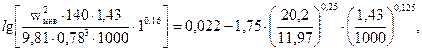 где е=0,1, А=1,4х10-4 , m=2,56, n=2,56 f-поправочный коэффициент, учитывающий свойства жидкости