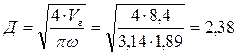 Скорость газа в интервале устойчивой работы можно определить по формуле: