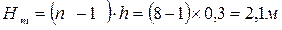 Высота насадки с учетом числа теоретических тарелок, определенных графически из рисунка 1 – n = 7 шт.