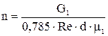 4.1.2 Определение коэффициента теплоотдачи для газовой смеси Принимаем трубы теплообменника диаметром dт = 25 х 2 мм. Направим газовую смесь в трубное пространство. Зададимся значением критерия Рейнольдса для газа Re = 40000 (развитое турбулентное движение) и определим требуемое число труб одного хода по формуле [2]