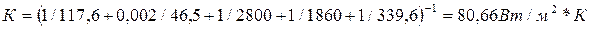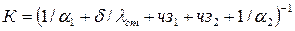 Коэффициент теплопередачи: Термическое сопротивление загрязнений: -со стороны газовой смеси