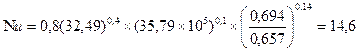 q=K∆tср =80,66*23,2=1871,312 Проверим применимость формулы расчета коэффициента теплоотдачи и уточним расчет. Расчетное значение ∆tср ∆tср = q/α=1871,312/339,6=5,51 °С Уточненное значение (GгРг): (GгРг)=35,79*105 *(5,51/5,8)0,1 =35,6*105 Формула применена верно, так как (GгРг) > 106