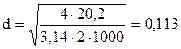 где в – внутренний диаметр трубы, в = 21 мм = 0,021 м;