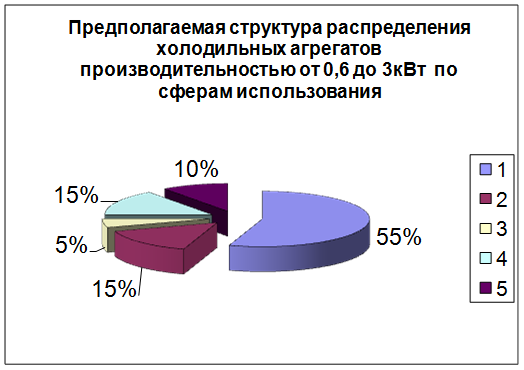 2.4 Расчет потребности в холодильных агрегатах производительностью от 0,6 до 3 кВт на территории Украины. Расчет выполнен ориентировочно по данным опросных листов, полученным от членов Ассоциации «Торгтехники», совещание которых состоялось на территории завода 25.07.05 с ориентацией по численности населения. Члены ассоциации «Торгтехники» обслуживают предприятия торговли и общественного питания. За последние 5 лет эти отрасли интенсивно развиваются, и в дальнейшем предвидится их рост. Данные, полученные от предприятий «Торгтехники» приведены в таблице. Таблица 4