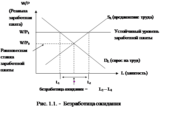 "Застывание" рынка труда в неравновесном состоянии связано с: 1). Законодательным установлением минимума заработной платы, которое ограничивает ее свободные колебания. Ограничивающее воздействие минимума заработной платы оказывается тем более значительным, чем выше удельный вес молодежи, женщин, лиц малоквалифицированного труда в составе рабочей силы, так как для этих категорий занятых равновесная ставка заработной платы ниже законодательно установленного минимума; 2) Фиксацией уровня заработной платы в коллективных договорах с профсоюзами и индивидуальных трудовых соглашениях; 3) Незаинтересованностью фирм в снижении уровня заработной платы из–за риска потери квалифицированной рабочей силы, увеличения общей текучести кадров, снижения производительности труда, трудовой дисциплины и объема прибыли. Следует подчеркнуть, что количественную характеристику безработицы в любой стране отражает показатель уровня безработицы, показывающий отношение количества безработных, зарегистрированных официальными службами, к общему количеству рабочей силы. [12, с.339] Таким образом, уровень безработицы можно рассчитать по формуле: